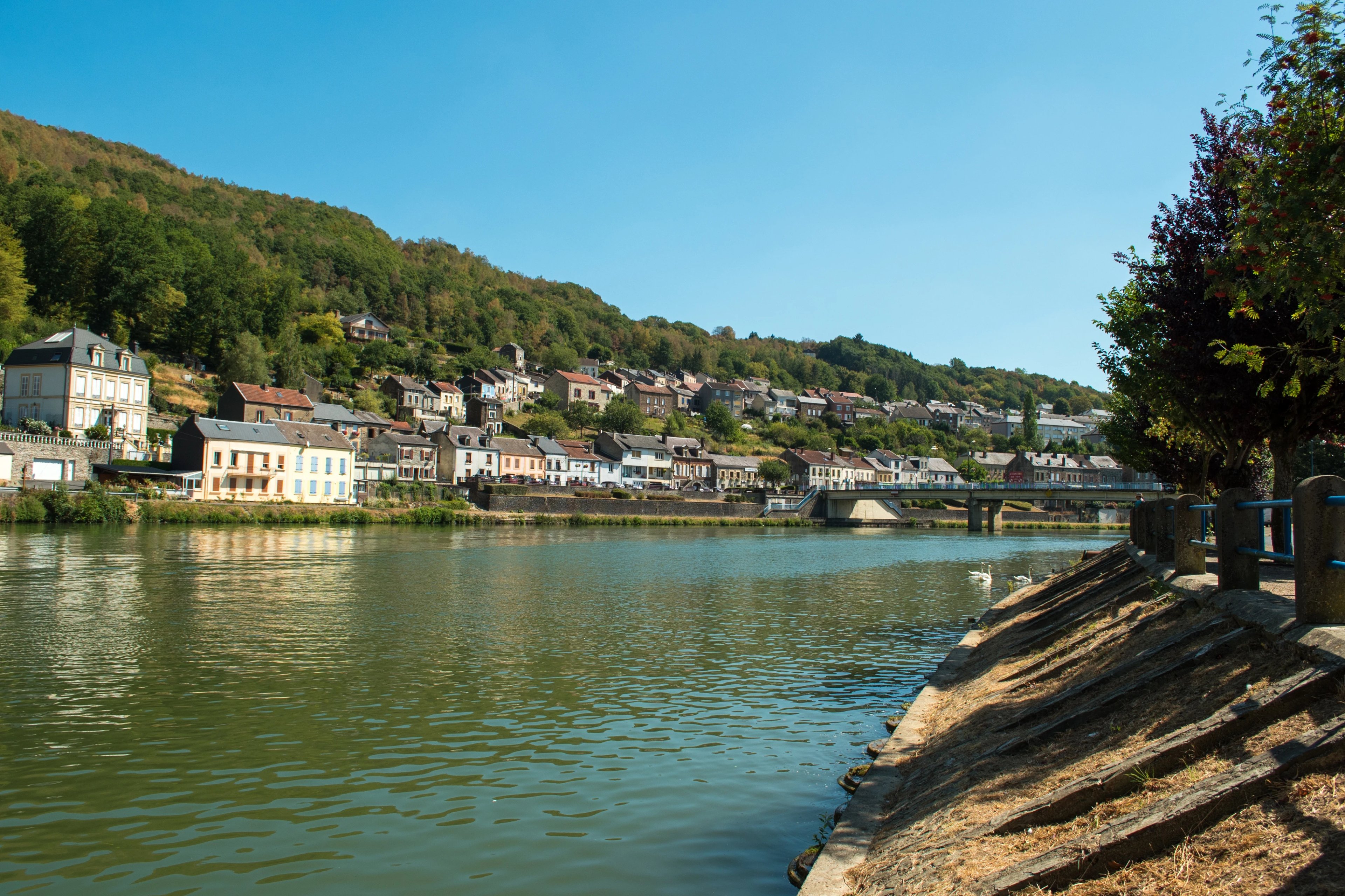 Just across the French border, Givet is framed by limestone cliffs and the River Meuse. The massive 17th-century Fort de Charlemont still dominates the skyline, stretching nearly 600 meters across the hilltop. The town’s riverside promenade and lively Saturday market make it an inviting stop, offering cyclists a taste of France before returning into Belgium’s wooded valleys.